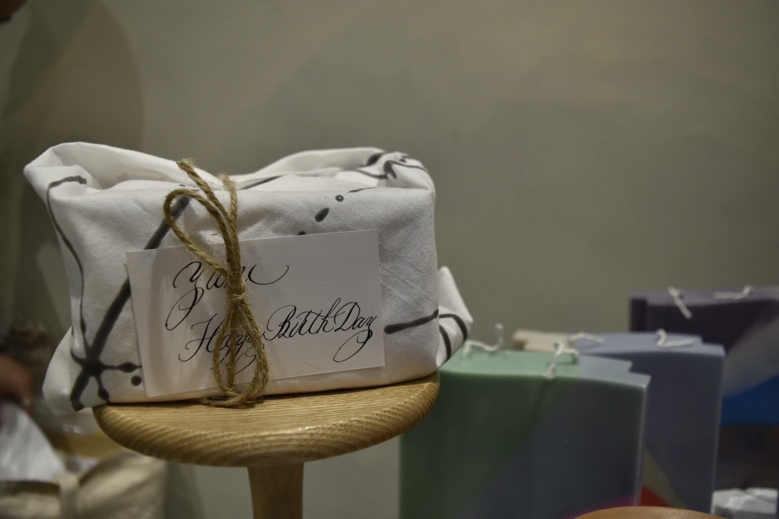 別料金になりますが、ギフトラッピングをご希望のお客様はお名前とメッセージを英語でカリグラフィーでお書きしております。