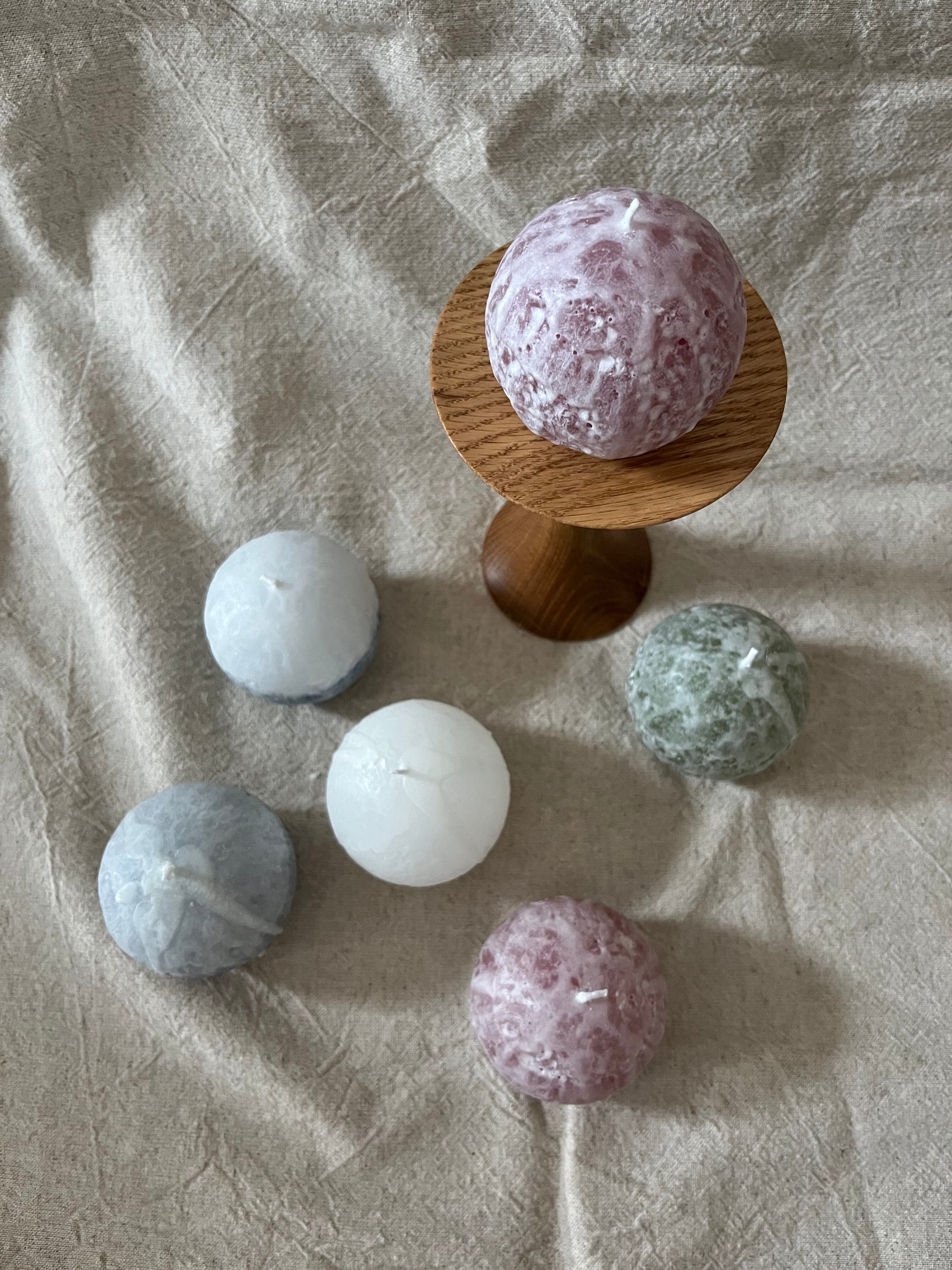 お部屋を優しく彩る球体の蝋燭は、独特のざらっとした質感が特徴で、
