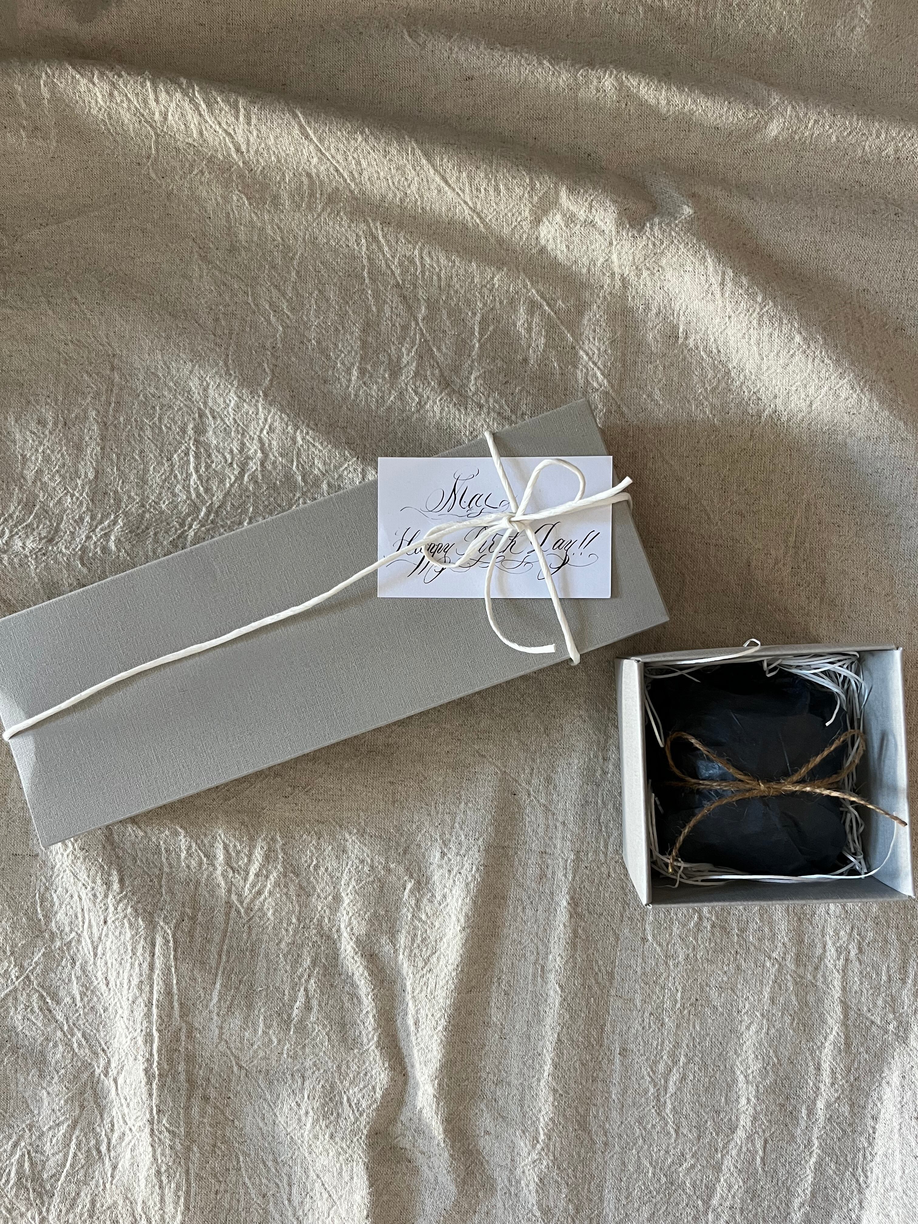 別料金になりますが、蝋でペイントした布に蝋燭をお包みするラッピングor箱に入れてのラッピングになります。